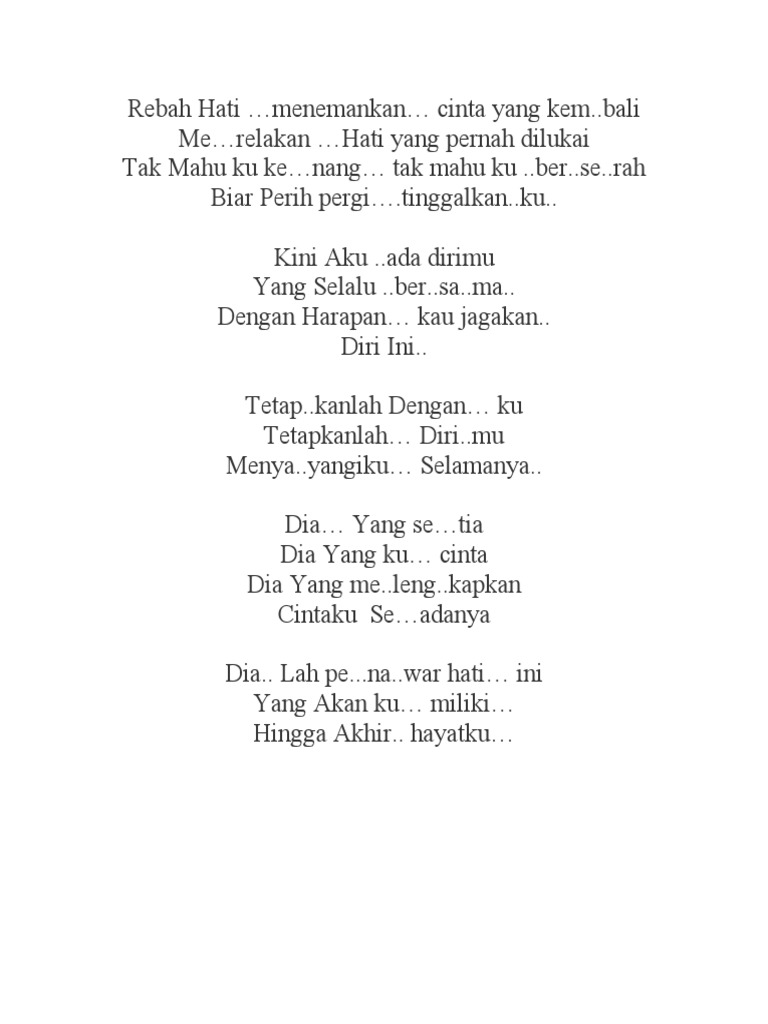 Berikut cuplikan syair nyanyian teks dari lagunya. Cinta suci Biarlah ia pergi Demi kebahagianmu Ku. Masa lalu biarlah masa lalu.